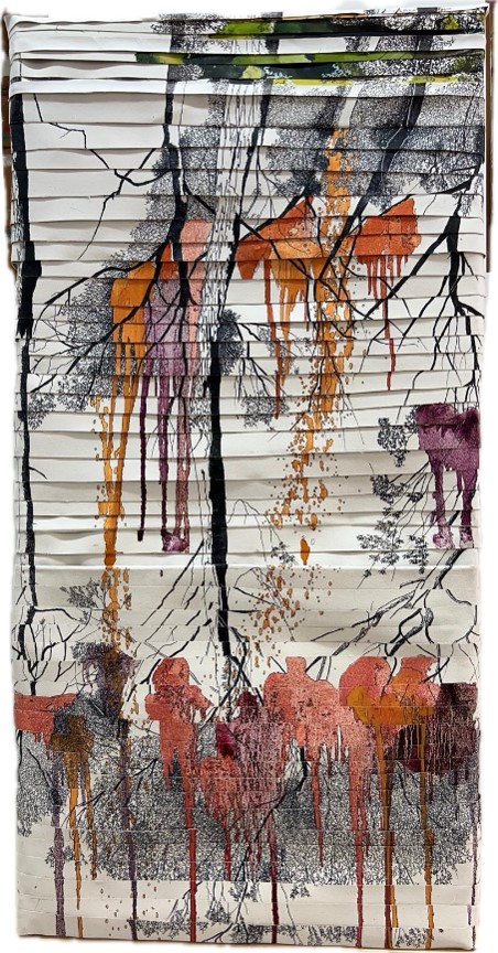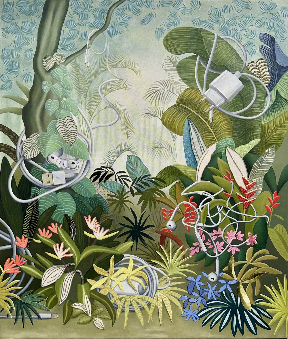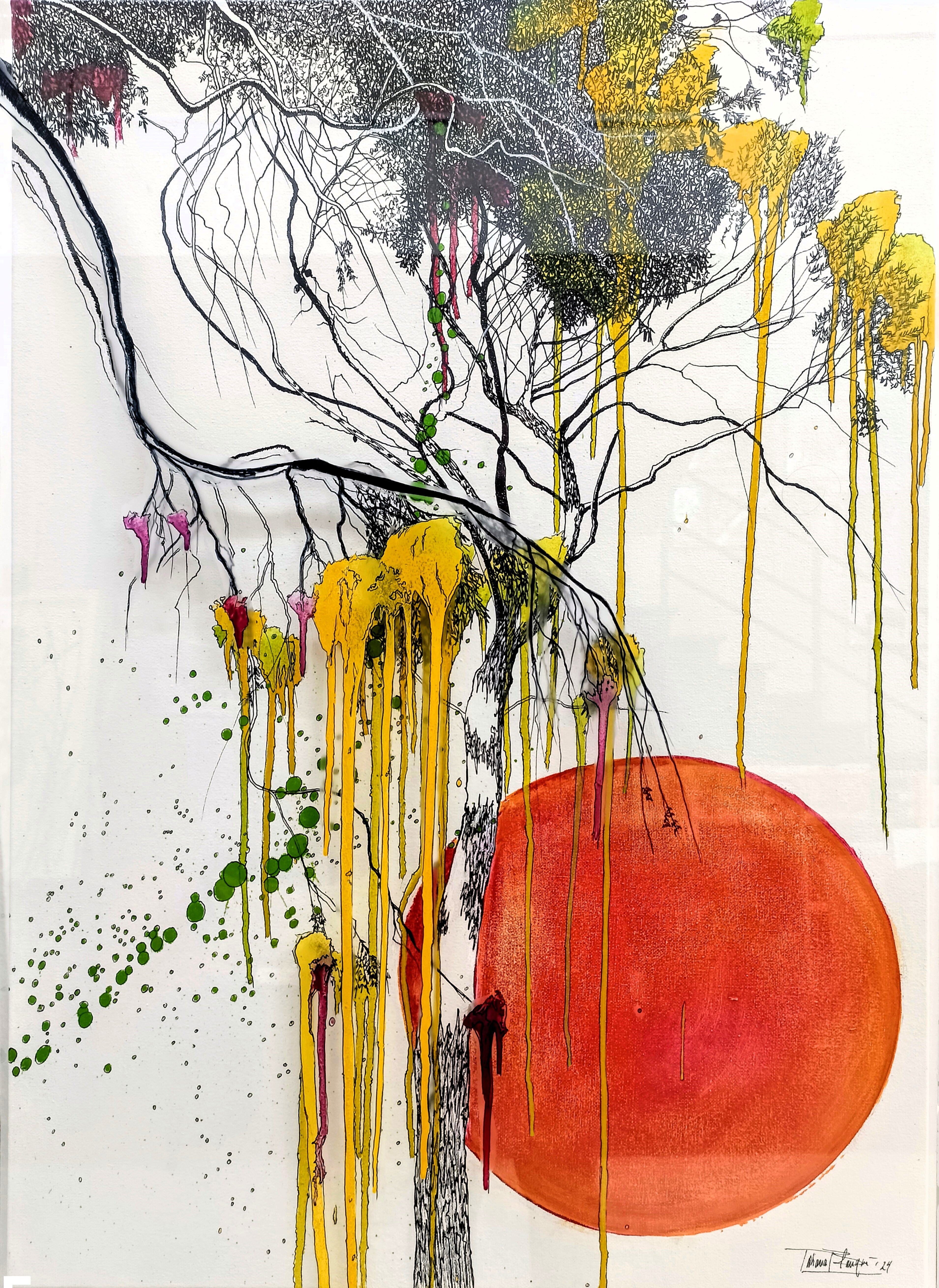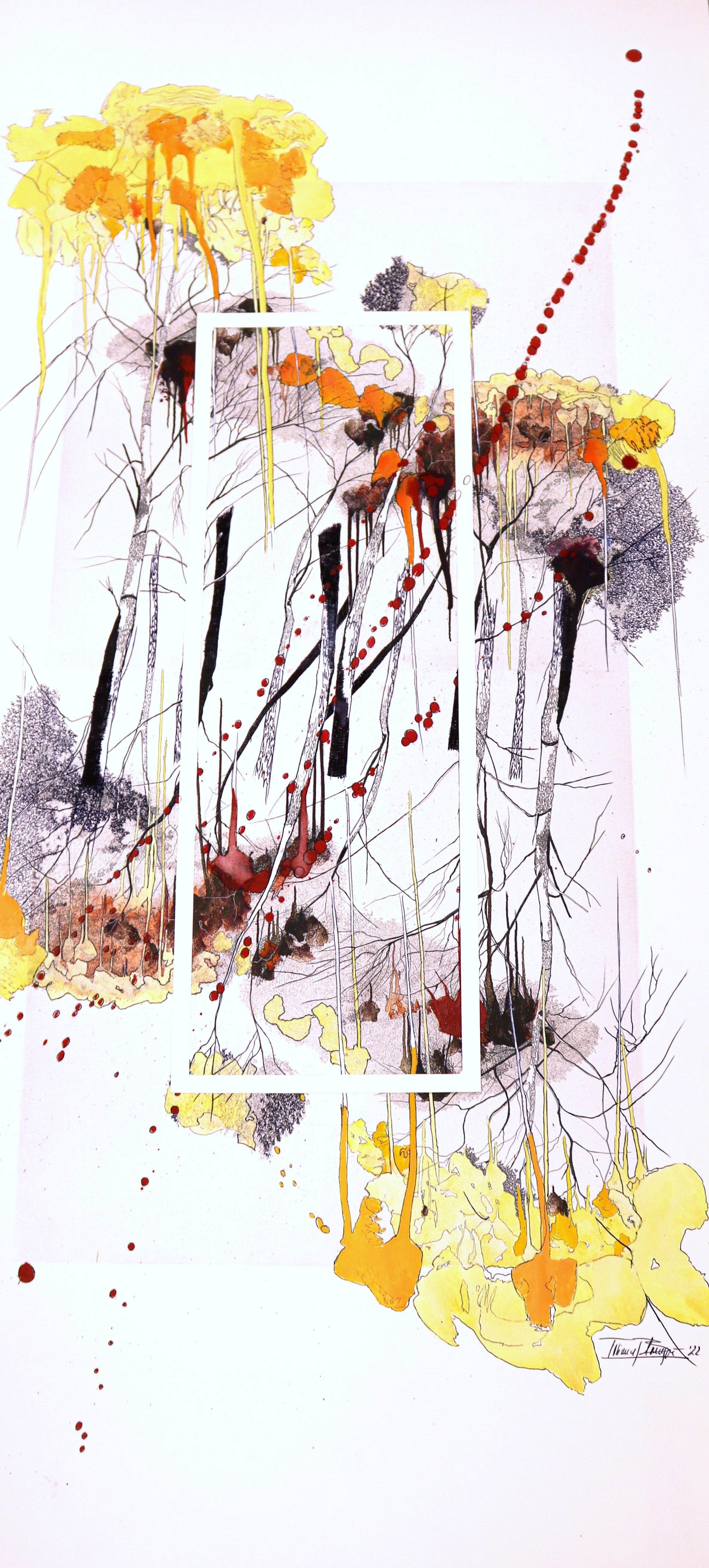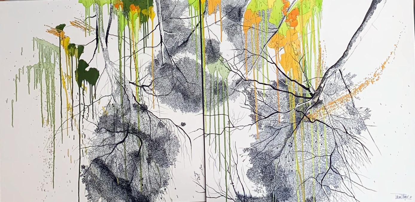 Tatiana Blanqué, con. una trayectoria consolidada en el ámbito de la pintura y la insta-lación centra su obra en la representación simbólica del bosque y los elementos vegeta-les como metáfora de lo esencial y la memoria. Sus composiciones evocan un retorno a lo primitivo, una búsqueda de conexión con lo auténtico a través del color, la textura y la transparencia.